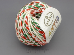 Предлагаме Ви Мерино Антик бяло, зелено, червено, 55% вълна, 45% памук -50g, разфасована във вид на гранка.